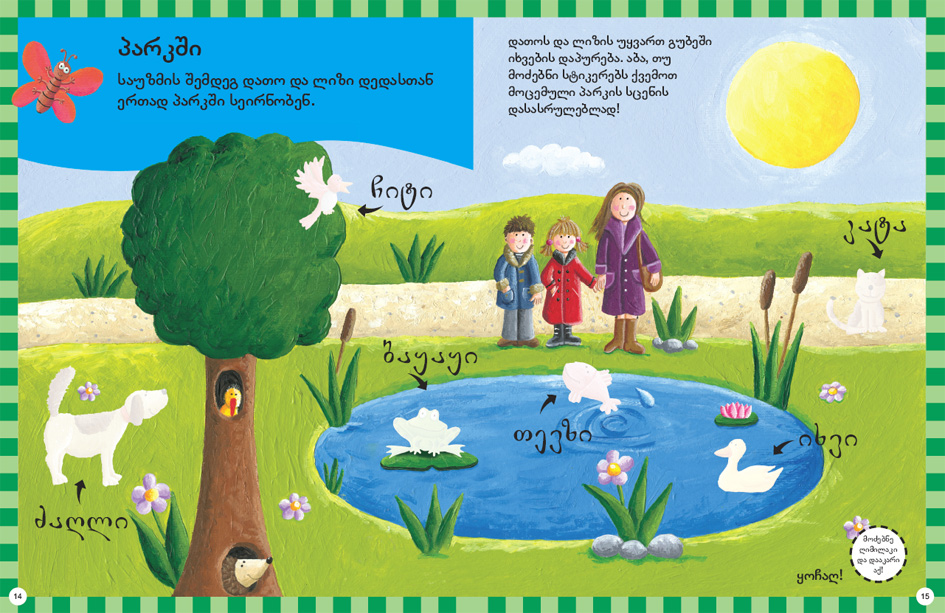 პატარებისთვის ძალიან სახალისო იქნება პირველი სიტყვების სწავლა სტიკერებიანი აქტივობის ამ წიგნის მეშვეობით! ამაში მათ ფერადოვანი და ნათელი ილუსტრაციებიც დაეხმარებათ. ბავშვები სიამოვნებით შეუსაბამებენ მრავალჯერად სტიკერებს წიგნის გვერდებზე მოცემულ სიტყვებს, შემდეგ კი სხვა საინტერესო და სასარგებლო აქტივობებით გაერთობიან!